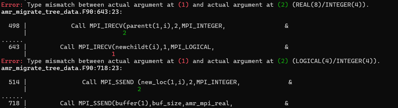 There are a few instances of type mismatches in amr_migrate_tree_data.F90.