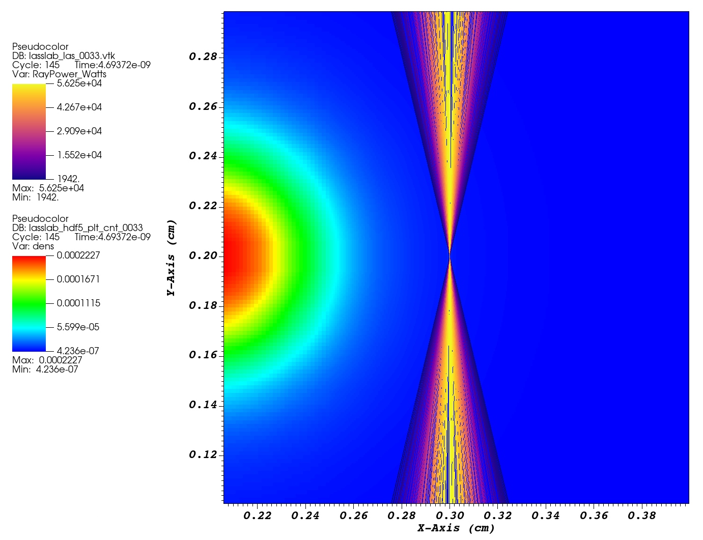 My problem is that, since I am using gaseous targets (with density below the critical density), the laser keeps propagating beyond the position defined by ed_target and ends up focusing into a single cell . As a result, I obtain a single focal point rather than a focal spot with a finite longitudinal extent. I therefore do not obtain a focal volume corresponding to the laser’s Rayleigh length.