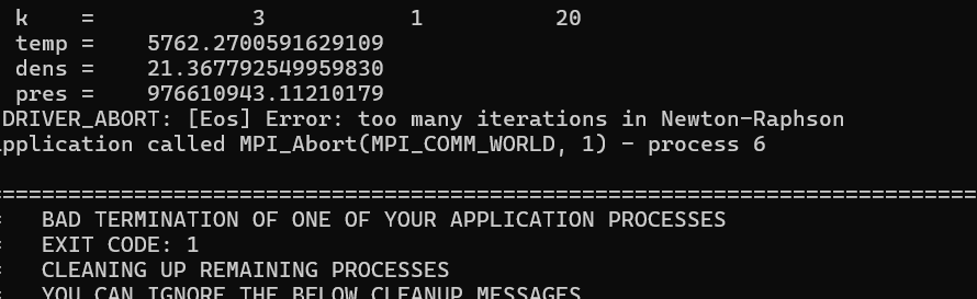 too many iterations in Newton-Raphson application called by MPI_Abort -